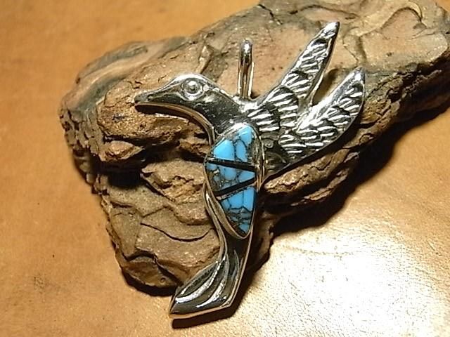 ナバホ族【Allison Manulit】<Hummingbird/ハミングバード>マルチカラーインレイ&サンドキャスト・ペンダント  25S45